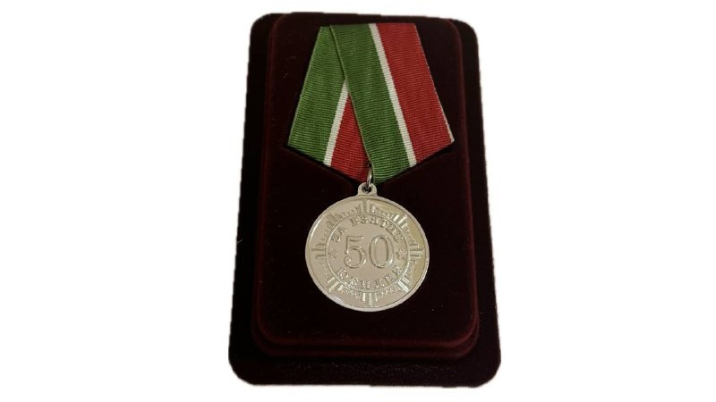 - Медаль из латуни с покрытием серебром "За взятие 50-ти летнего юбилея"