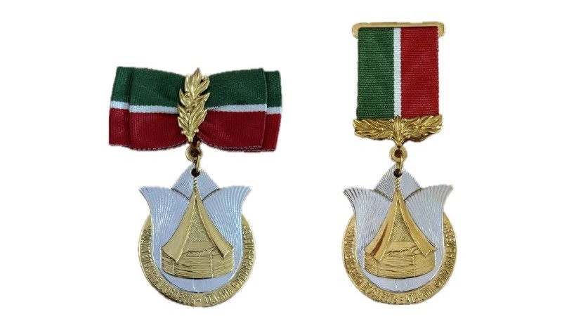 Медаль выполнена из серебра 925 пробы с частичным покрытием золотом 999 пробы, медаль с помощью кольца и ушка соединяется с колодкой, обтянутой шёлковой муаровой лентой в виде триколора Татарстана.
