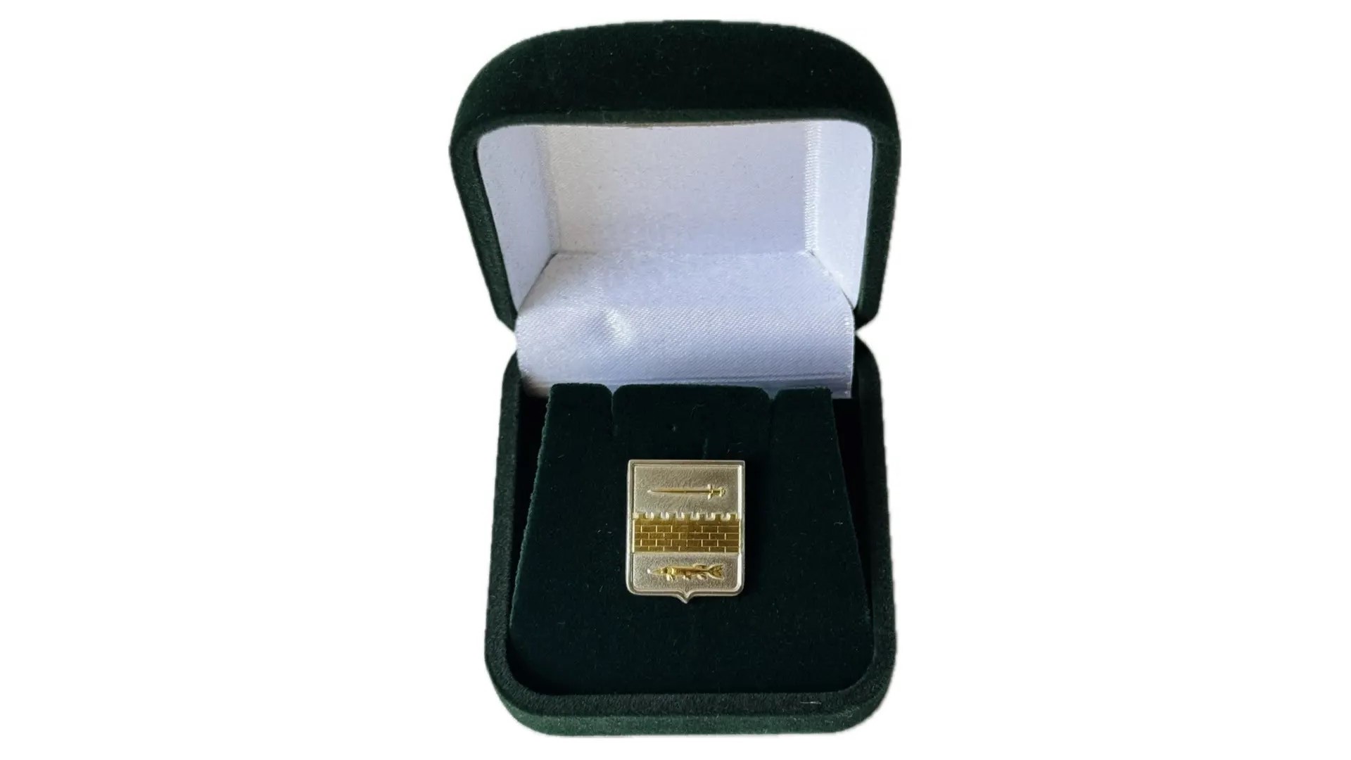 Нагрудный знак выполнен в виде Герба Новошешминского района.